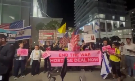 Manifestation à Tel Aviv, devant l’hôtel où réside le secrétaire d’État américain Antony Blinken, exigeant un accord d’échange immédiat avec le Hamas pour récupérer les otages israéliens vivants. CAPJPO-Europalestine