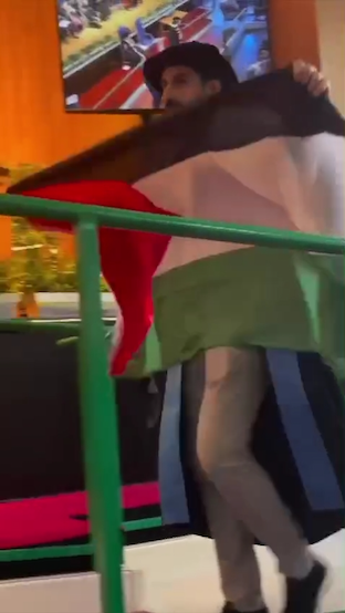 Ali Alsayegh, diplômé d’un doctorat, met un keffieh et hisse le drapeau palestinien lors de sa cérémonie de remise de diplômes à l’Université d’Exeter en Angleterre.