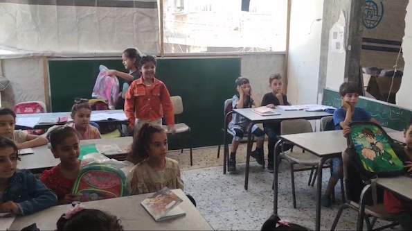 Et tandis que dans d’autres lieux on termine les cours, ici on les poursuit et on offre même aux enfants qui viennent en classe de nouveaux cartables !