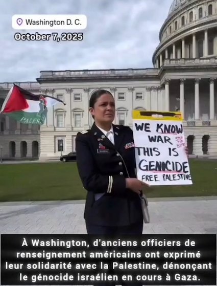 Jusqu’au dernier moment,  d’anciens officiers de l’armée et des services de renseignement américains à Washington ont exprimé leur solidarité avec la Palestine, et leur refus que leurs impôts continuent à financer le génocide à Gaza