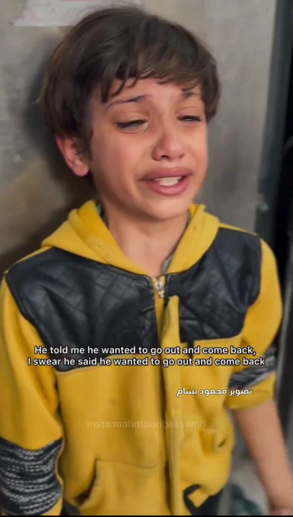 Un enfant pleure son frère qui vient de mourir dans un bombardement à Rafah