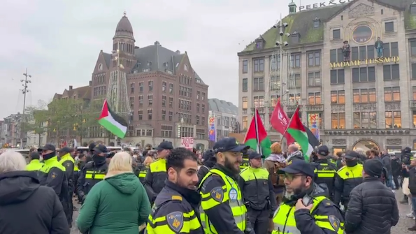 Des centaines de manifestants anti-génocide se sont rassemblés sur la place du Dam à Amsterdam, malgré la répression, pour protester en faveur de la cause palestinienne et contre le génocide à Gaza, de même que sur la distorsion des faits concernant les hooligans israéliens qui se sont fait passer pour des victimes